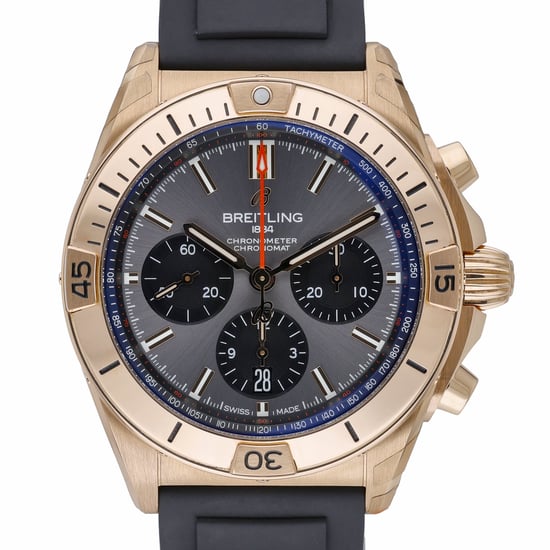 Experience the Breitling Chronomat B01 42 (RB0134), a distinguished 42mm gents chronograph crafted in 18ct rose gold and presented in excellent condition. Its grey chronograph dial sits beneath scratch‑resistant sapphire crystal, framed by a unidirectional rotating bezel, and driven by a precise automatic movement. Water resistant to 100M, this versatile piece blends sport performance with refined luxury, completed by a comfortable rubber strap and secure deployment clasp. Manufactured in 2021, it is supplied with its original box and papers, covered by a 2‑Year Warranty, and supported by our 14‑Day Return Policy with Next Day Delivery. BQ Ref: 52716.