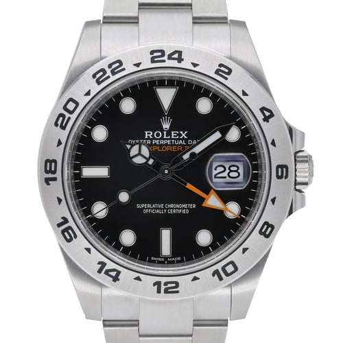 Experience the Rolex Explorer II ref. 216570, a 42mm professional tool watch crafted in robust Oystersteel with a sleek black dial and a fixed 24-hour graduated bezel for around-the-clock readability and effortless travel time tracking. This New/Unworn 2021 example features an automatic movement, scratch‑resistant sapphire crystal, and the iconic Oyster bracelet secured by an Oysterlock clasp, offering reliability and comfort with 100m water resistance. Supplied complete with original box, papers, and white tag (BQ Ref 52809). Enjoy peace of mind with our 2 Year Warranty and a 14 Day Return Policy, plus the convenience of Next Day Delivery. An enduring classic engineered for adventure and everyday wear.