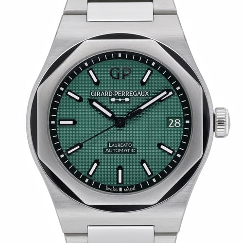 Discover the Girard-Perregaux Laureato, ref. 81010-11-3153-1CM (BQ Ref 52835), a 2023 gents’ timepiece in excellent condition. This model pairs a 42mm stainless steel case and plain bezel with a matching steel bracelet and secure folding clasp. Its rich green baton dial sits beneath sapphire crystal, while a reliable automatic movement ensures refined performance. Water resistant to 100M, the Laureato balances everyday durability with understated elegance. Supplied with original box and papers, it includes a 2 Year Warranty for peace of mind, plus Next Day Delivery and a 14 Day Return Policy.