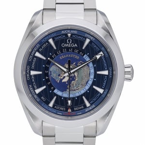 Presented in excellent condition, this 2024 Omega Seamaster Aqua Terra Worldtimer (Model 220.10.43.22.03.001, BQ Ref 52918) combines refined design with everyday robustness. Its 43mm stainless steel case and bracelet are matched to a blue dial with baton hour markers, protected by sapphire crystal and secured with a folding clasp. Powered by an automatic movement and water resistant to 150M, it’s built for reliable performance at home and abroad. This watch is supplied with its box and original papers, and benefits from a 5-year manufacturer’s warranty running from the 2024 date of manufacture. Additional details include a plain bezel and steel bracelet, with Next Day Delivery available and a 14 Day Return Policy for peace of mind. A distinguished Worldtimer from Omega, ready for your next journey.