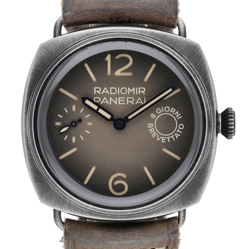 Presenting the Panerai Radiomir Otto Giorni PAM01347 (BQ Ref 52908), a 2024 gents’ timepiece in excellent condition. The 45mm steel case showcases a rich brown Arabic dial beneath sapphire crystal, complemented by a clean, plain bezel. Powered by a manual movement, it is paired with a supple leather strap secured by a classic pin buckle and offers water resistance to 10 ATM. Supplied with original box and papers, this Radiomir balances Panerai’s heritage design with everyday versatility. Covered by a 5-year manufacturer’s warranty from the date of manufacture and supported by our 14-day return policy. In stock for next day delivery.