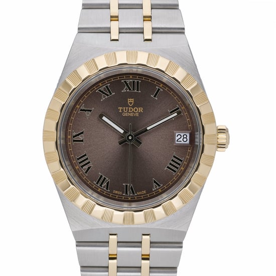 The Tudor Royal (BQ Ref 52954) balances sport and refinement in a versatile 34mm steel case with a signature notched bezel. Its rich chocolate dial with Roman numerals sits beneath durable sapphire crystal, while a reliable automatic movement ensures effortless precision. An integrated steel and yellow gold bracelet with folding clasp provides comfort and polish for daily wear. Manufactured in 2023 and in excellent condition, this timepiece is supplied with its Tudor box and original papers. Enjoy added confidence with our 2-year warranty, next day delivery, and a 14-day return policy.