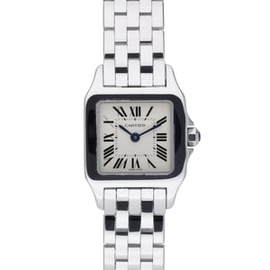 Refined and feminine, the Cartier Demoiselle is a ladies’ timepiece that captures the maison’s signature elegance. This model features a petite 20mm stainless steel case with a plain bezel, framing a silver dial with classic Roman numerals. Powered by a reliable quartz movement and protected by scratch‑resistant sapphire crystal, it delivers precise, low‑maintenance timekeeping. The integrated steel bracelet with a secure folding clasp completes its sleek profile, while 30M water resistance adds everyday practicality. Presented in excellent condition and supplied with its Cartier box, BQ Ref 52957 is ready to wear and enjoy. Benefit from next day delivery and our 14‑day return policy for complete peace of mind.
