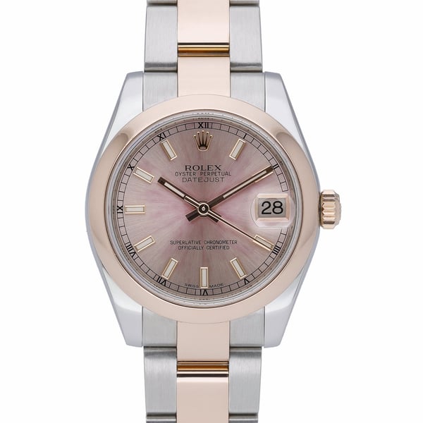 Rolex Datejust 31 (ref. 178241), a refined 31mm midsize in steel and rose gold with a pink baton dial, domed bezel, and scratch‑resistant sapphire crystal. Powered by a reliable automatic movement and fitted with the iconic Oyster bracelet and Oysterclasp, this 2015 example offers everyday elegance with 10 ATM water resistance. Presented in excellent condition, it is supplied with its Rolex box, original papers, and green tag. Backed by our 2 Year Warranty and a 14 Day Return Policy, with next day delivery available. BQ Ref: 52872.