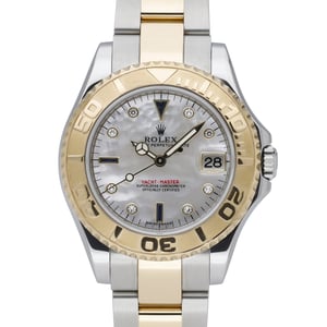 Elevate your collection with this Rolex Yacht-Master, reference 168623 (BQ Ref 53076), a refined 35mm midsize crafted in steel and yellow gold. Its signature bidirectional rotatable bezel frames a lustrous mother-of-pearl dial set with diamonds, uniting sporty utility with elegant brilliance. Driven by a reliable automatic movement and protected by scratch-resistant sapphire crystal, it’s water resistant to 100M for confident daily wear. The two-tone Oyster bracelet with secure Oysterlock clasp provides robust comfort on the wrist. Manufactured in 2012 and presented in excellent condition, this piece is complete with its original box, papers, and green tag. Offered with a 2 Year Warranty, Next Day Delivery, and a 14 Day Return Policy, this Yacht-Master is a standout opportunity to own an iconic Rolex with timeless nautical pedigree.