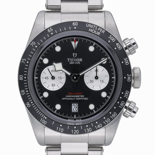 Discover the Tudor Black Bay Chrono (Model 79360N), a 41mm steel chronograph that fuses dive-watch heritage with motorsport inspiration. This 2021 example is in excellent condition and powered by an automatic movement, showcasing a black bi-compax chronograph dial under sapphire crystal. The tachymetric bezel, 200M water resistance, and robust steel bracelet with folding clasp deliver performance and versatility for everyday wear. Supplied with its original box, original papers, and white tag, this piece is listed under BQ Ref 53004. Enjoy peace of mind with our 2 Year Warranty and 14 Day Return Policy, plus next day delivery for a seamless purchase experience.