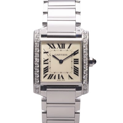 Pre-owned Cartier Tank Francaise 2301 with 25mm Steel case and White dial. Good condition.