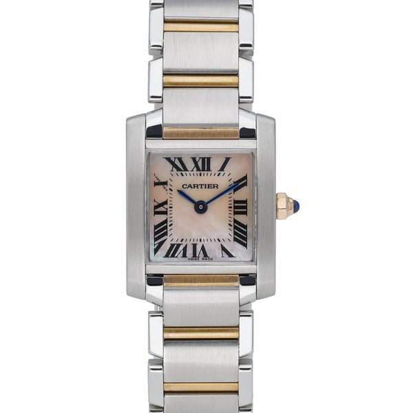 An icon of modern elegance, the Cartier Tank Française (Model 2384, BQ Ref 53069) features a 20mm steel and yellow gold case and matching bracelet, set with a lustrous pink mother-of-pearl dial and classic Roman numerals. Powered by reliable quartz movement and protected by scratch-resistant sapphire crystal, it offers 30m water resistance and a secure folding clasp—perfect for refined daily wear. Produced in 2000 and presented in excellent condition, this ladies’ timepiece is supplied with a box for a complete presentation. Enjoy added confidence with a 2 Year Warranty and the flexibility of our 14 Day Return Policy, plus the convenience of Next Day Delivery.
