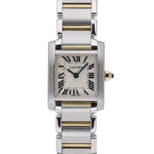 Timeless and elegant, this ladies Cartier Tank Francaise (Model 2384; BQ Ref 53006) features a 20mm steel and yellow gold case with a plain bezel, paired with a matching bracelet secured by a folding clasp. The crisp white Roman dial sits beneath durable sapphire crystal, while a reliable quartz movement offers precise, low‑maintenance timekeeping. Manufactured in 2000 and presented in excellent condition, it delivers everyday refinement with practical 30M water resistance. Supplied with box and backed by our 2 Year Warranty, this iconic piece arrives ready to wear. Enjoy peace of mind with our 14 Day Return Policy and the convenience of Next Day Delivery.