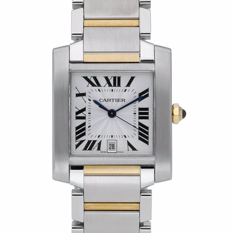 Elevate your collection with this Cartier Tank Francaise, model 2302, a refined gents timepiece in excellent condition. The 28mm steel and yellow gold case and matching bracelet frame a crisp white Roman dial beneath durable sapphire crystal, complemented by a smooth, plain bezel and secure folding clasp. Powered by an automatic movement and offering 30M water resistance, this 2009 example delivers timeless elegance and everyday reliability. Supplied with its box, it includes a 2 Year Warranty for peace of mind, plus Next Day Delivery and a 14 Day Return Policy. BQ Ref: 53001.