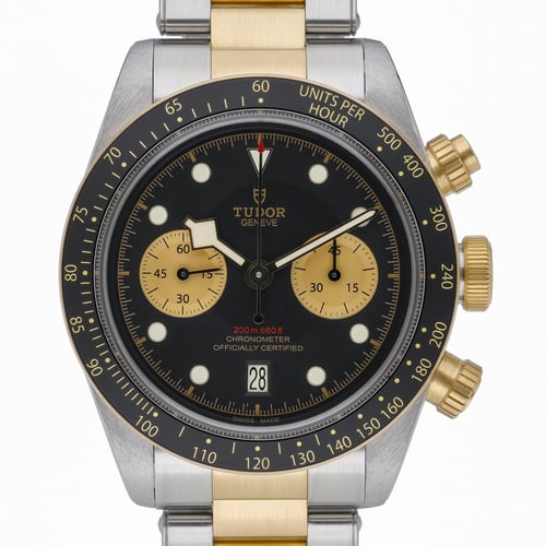 Iconic dive-watch heritage meets motorsport timing in the Tudor Black Bay Chrono S&G (BQ Ref 53162). This 41mm 2025 model pairs a robust steel case with yellow gold accents and a black bi-compax chronograph dial, protected by scratch-resistant sapphire crystal and framed by a tachymetric scale bezel. Powered by a dependable automatic movement and water resistant to 20 ATM, it’s engineered for everyday performance. The two-tone steel and yellow gold bracelet with folding clasp offers a refined, versatile fit. Presented in excellent condition, this watch is supplied with its original Tudor box and papers. Enjoy added peace of mind with our 2 Year Warranty, 14 Day Return Policy, and Next Day Delivery.