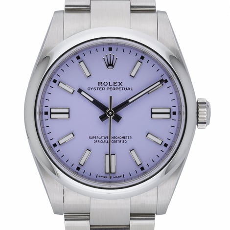 Presenting the Rolex Oyster Perpetual 41 (Model 134300), a new/unworn 2026 piece crafted in robust Oystersteel. Its refined lavender dial with baton hour markers sits beneath scratch-resistant sapphire crystal, framed by a sleek domed bezel. Powered by an automatic movement and water resistant to 100 meters, it’s engineered for reliable, everyday performance. The classic Oyster bracelet with Oysterclasp completes the timeless design. Supplied with Rolex box, original papers, and original white tag. Includes a 5-year manufacturer’s warranty from the 2026 date of manufacture. Case size: 41mm. BQ Ref: 53153. Next Day Delivery available and supported by our 14 Day Return Policy.