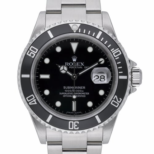 Experience the benchmark of dive-watch engineering with this Rolex Submariner 16610 (2006), presented in excellent condition. Its 40mm steel case, unidirectional rotatable bezel, and black dial sit beneath durable sapphire crystal, while the automatic movement and steel Oyster bracelet with Oysterlock clasp deliver reliable performance and everyday comfort. Water resistant to 300M, this classic Submariner balances rugged capability with timeless style. Supplied with original box, papers, and green tag; BQ Ref 53157. Includes our 2 Year Warranty and a 14 Day Return Policy for peace of mind, plus Next Day Delivery for swift dispatch.