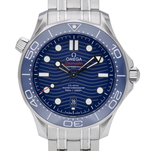 Experience the Omega Seamaster Diver 300M, model 21030422003001—an elegant yet capable 42mm stainless steel diver in excellent condition. Its blue, plain dial sits beneath scratch-resistant sapphire crystal and is paired with a unidirectional rotating bezel for precise timing. Powered by a reliable automatic movement and secured on a robust steel bracelet with a folding clasp, this gents watch delivers true 300M water resistance and everyday versatility. Year of manufacture: 2018. Supplied with original box and papers. BQ Ref: 53164. Enjoy added confidence with our 2 Year Warranty, a 14 Day Return Policy, and Next Day Delivery.