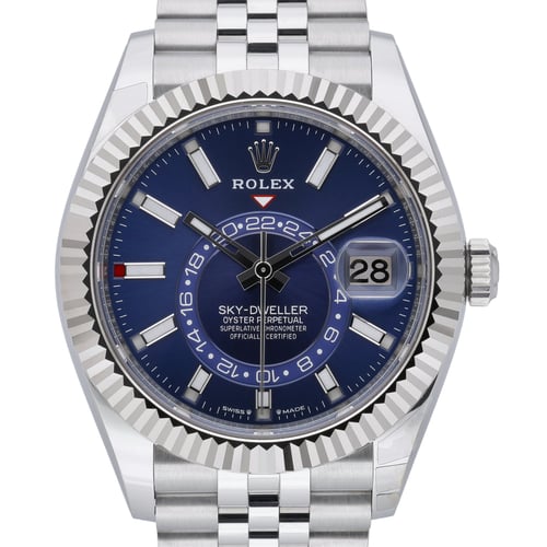 Introducing the Rolex Sky-Dweller 336934, a 42mm gents timepiece crafted in steel and white gold with a signature fluted bezel. Its striking blue dial features the Sky-Dweller’s annual calendar display, protected by sapphire crystal and rated to 100M water resistance. Powered by an automatic movement and presented on a Jubilee bracelet in Oystersteel with an Oysterclasp, this 2025 example is in excellent condition. Supplied complete with original Rolex box, original papers, and the original white tag. Covered by a 5-year manufacturer warranty from the 2025 date of manufacture. BQ Ref 53319. Next Day Delivery available and backed by our 14 Day Return Policy.