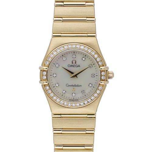 Elevate your collection with this ladies’ Omega Constellation, a refined 25.5mm timepiece crafted in solid 18ct yellow gold. Showcasing a diamond-set bezel and a white mother-of-pearl dial with diamond hour markers beneath a scratch-resistant sapphire crystal, it blends elegance with everyday practicality. Powered by a precise quartz movement and secured with a matching 18ct yellow gold bracelet and folding clasp, it offers 30M water resistance. This 1998 example is in excellent condition and is complete with its original box and papers. Model: 895.1201 (BQ Ref 53224). Supplied with a 2 Year Warranty, 14 Day Return Policy, and Next Day Delivery.