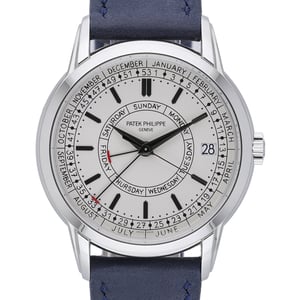 Discover the Patek Philippe Calatrava Weekly Calendar 5212A-001, a 40mm stainless-steel classic in excellent condition from 2021. Powered by an automatic movement, it features a crisp white dial with the practical weekly calendar display, protected by scratch-resistant sapphire crystal. The watch is paired with a leather strap secured by a pin buckle, while a plain bezel underscores the Calatrava’s timeless refinement. Water resistant to 30M, this gents model balances everyday versatility with signature Patek elegance. Supplied with its original box and papers (BQ Ref 53375) and backed by our 2-year warranty and 14-day return policy. Ready for your wrist with next day delivery.