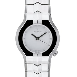 TAG Heuer Alter Ego WP1314.BA0751 delivers sleek, early-2000s style with dependable performance. Presented in good condition, this ladies’ model features a 30mm stainless steel case with a plain bezel and an integrated steel bracelet secured by a folding clasp. A crisp white dial sits beneath scratch-resistant sapphire crystal, while a precise quartz movement ensures effortless, reliable timekeeping. With 100M water resistance, it’s as practical as it is refined—ideal for daily wear. Year of manufacture: 2000. Supplied with a 2 Year Warranty, plus our 14 Day Return Policy and Next Day Delivery for fast, convenient service. BQ Ref: 53409.