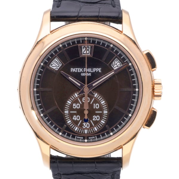 Pre-owned Patek Philippe Annual Calendar 5905R-001 with 42mm 18ct Rose Gold case and Brown dial. Excellent condition.