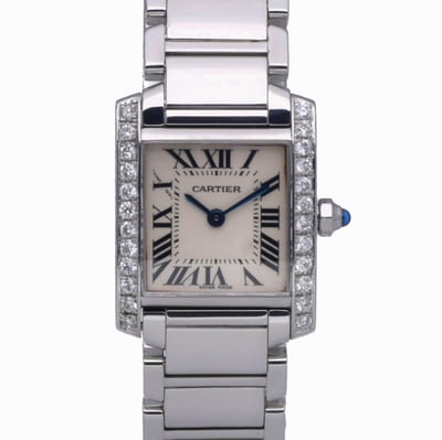 Pre-owned Cartier Tank Francaise 2384 with 25mm Steel case and White dial. Good condition.